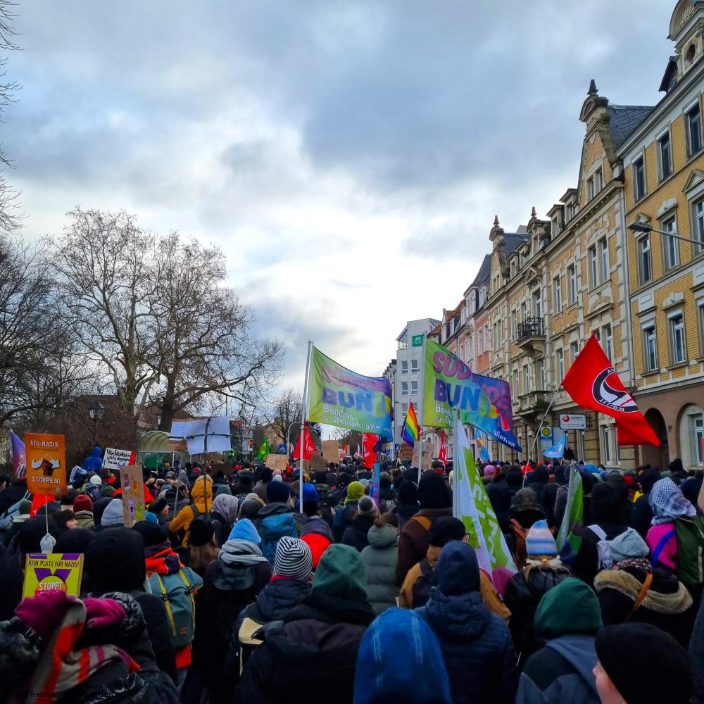 Im Demoaufruf, der unter anderem auch von Attac, Campact, Fridays for Future und der IG Metall unterzeichnet worden war, hieß es: „Die AfD ist eine von Faschist*innen geführte Partei. Sie verbreitet Rassismus, Ausgrenzung und Spaltung. Sie ist eine Bedrohung für Millionen von Menschen.“ Und weiter: „Der Aufstieg der AfD und der Rechtsruck können gestoppt werden – wenn wir gemeinsam laut werden und gemeinsam handeln.“