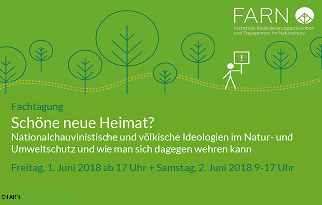 Am 1. & 2. Juni 2018 findet in Bielefeld die Fachtagung der Fachstelle Radikalisierungsprävention und Engagement im Naturschutz (FARN) statt, die über historische und aktuelle Verknüpfungen zwischen Rechtsextremismus und Natur- und Umweltschutz informiert.