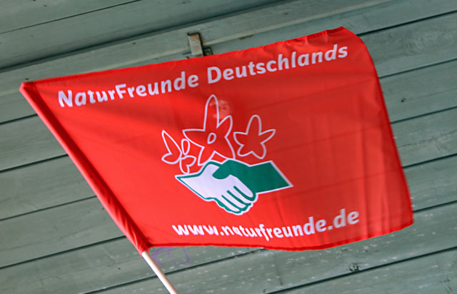 Die NaturFreunde-Fahne für jeden Anlass. Die rote Fahne ist 90 x 60 Zentimeter groß und zeigt neben dem Bildlogo auch die Aufschrift NaturFreunde Deutschlands. Geliefert wird nur die Stofffahne, ein Stab zur Befestigung wird zusätzlich benötigt.