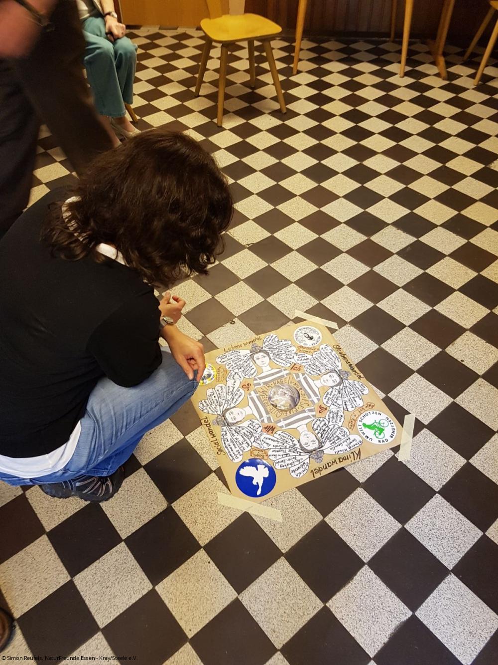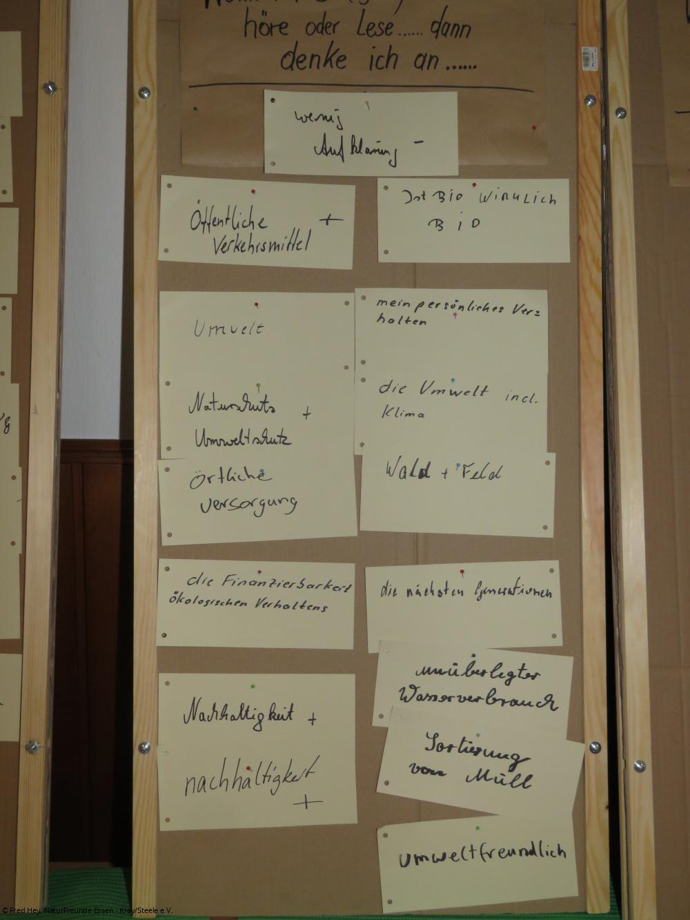 Es waren Plakate aufgehängt und Tafeln standen bereit, die – mit viel Liebe fürs Detail und in sorgfältiger und mühsamen Vorbereitung – beschriftet und behangen waren. Dann wurden die Unterscheidung aktiv und gemeinschaftlich besprochen, nach 2,5-stündiger intensiver Mitarbeit jedes Einzelnen wurde einiges zu dem Thema erarbeitet, aufgeschrieben und ausgetauscht. Kurze Diskussionen blieben da nicht aus.